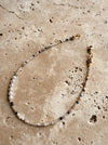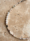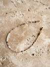 The Bounty Anklet features a delicate blend of natural freshwater pearls and tiny multicoloured gemstones — each bead offering its own subtle character. The pearls bring classic luminosity, while the stones introduce earthy tones of blush, sand, and moss for an effortlessly organic look.